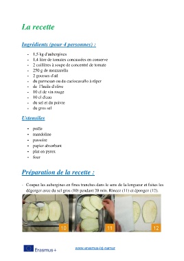 dégorger avec du sel gros (10) pendant 20 min. Rincez (11) et épongez (12).